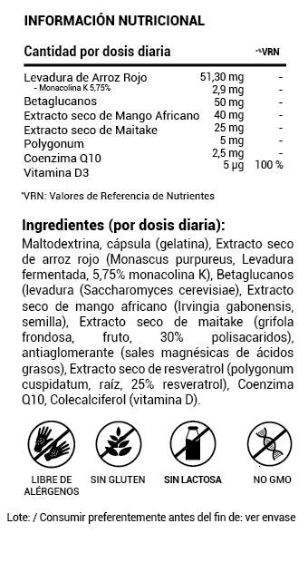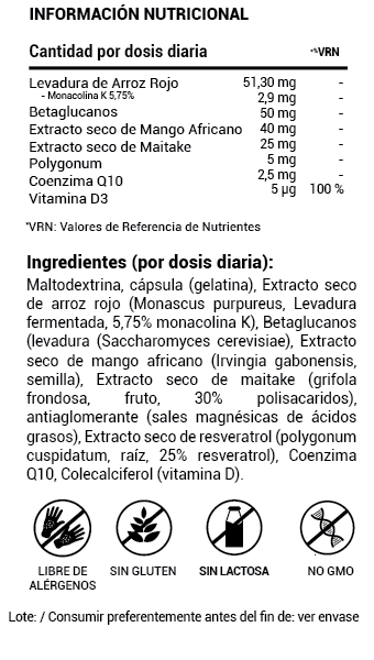• No debe consumirse si ya se están tomando otros productos que contengan arroz fermentado con levadura roja.